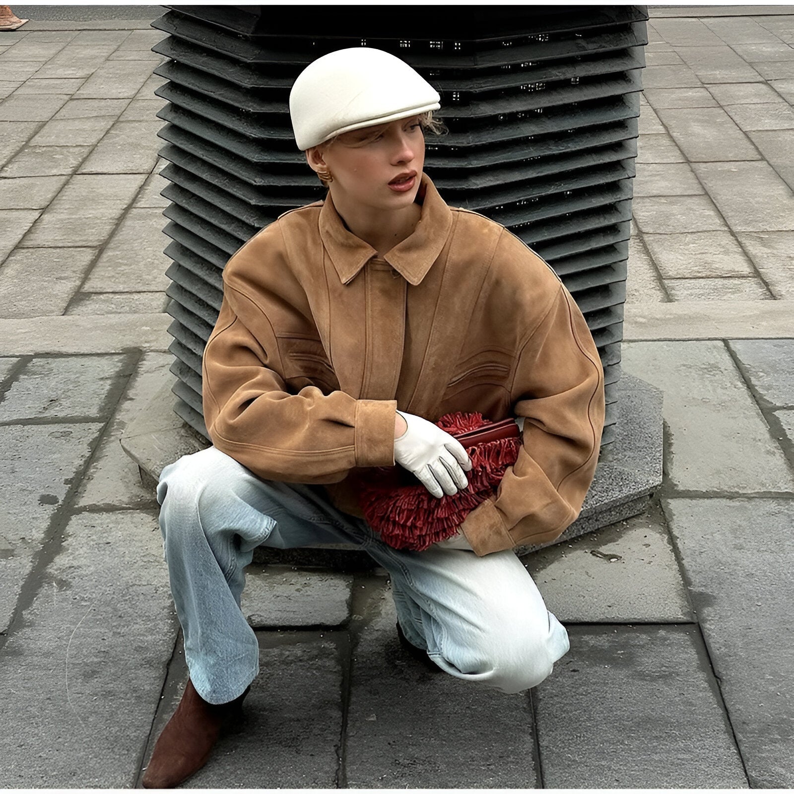 Geef je look een stijlvolle upgrade met deze unieke suède patchwork jas die luxe en creativiteit combineert.